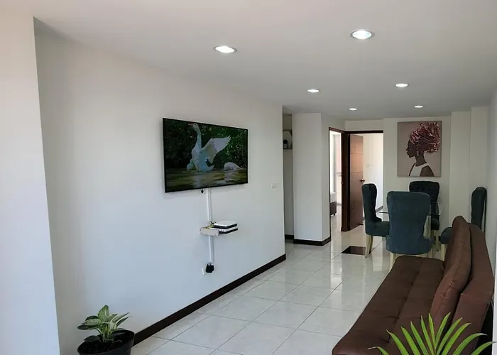 A fully furnished kitchen with a microwave, a fridge, and kitchenware is provided in this apartment, along with tea and coffee-making facilities. The nearest bus stop to Apartamento Remodelado Enlaureles 300Mbps Internet Apartment is Paradero unidad deportiva de Belen, which is 10 minutes' walk away.